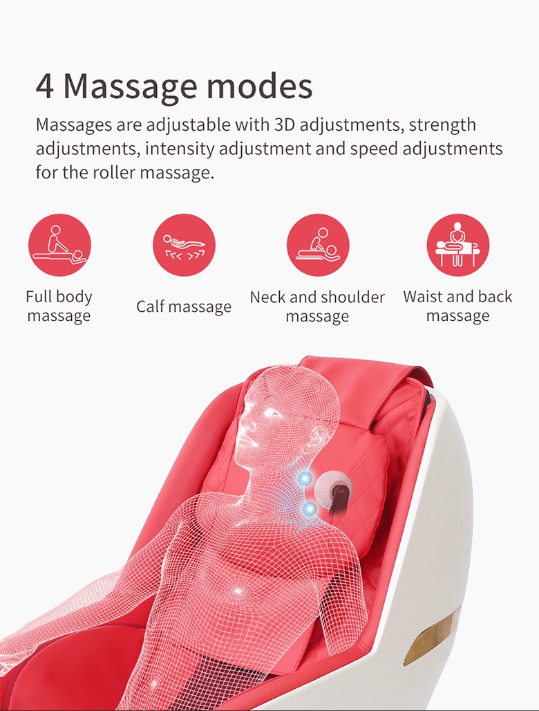 The Zero gravity position is the perfect position tb enjoy a massage. when placed in zero gravity position,the weight of your back will be virtually supported the backrest. In this position when the knees are brcught above the chest wiloptimize your blood fiow,in order to relax the body more.This wil in turn help to maximize the intensity of the massage and reduces the compression along your spine.